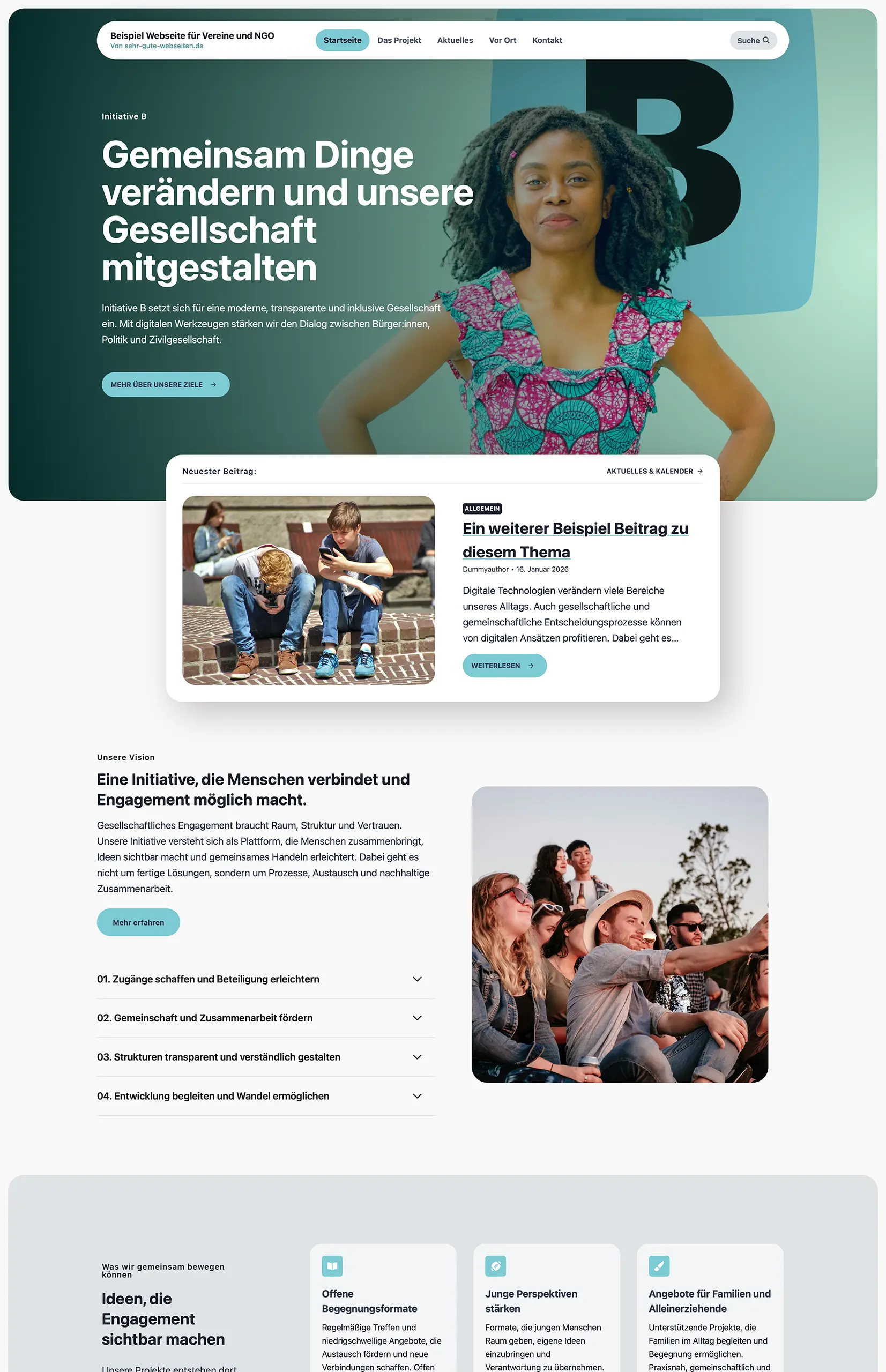 Vereine und NGOs brauchen Webseiten, die informieren, begeistern und zur Beteiligung einladen. Wir erstellen Webseiten für Vereine, Initiativen und gemeinnützige Organisationen, die Engagement sichtbar machen und Vertrauen aufbauen. Ob Projekte, Ziele, Mitmach-Möglichkeiten oder Spendenaufrufe – Inhalte werden klar strukturiert und verständlich vermittelt. Der modulare Aufbau ermöglicht es, Inhalte selbstständig zu pflegen und bei Bedarf zu erweitern. Dabei achten wir auf eine klare Sprache, gute Lesbarkeit und eine sinnvolle Nutzerführung. Ideal für Organisationen, die ihre Arbeit transparent darstellen und online mehr Menschen erreichen möchten.